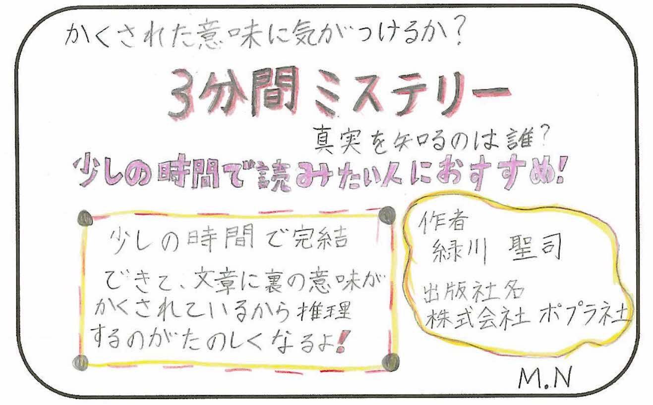 | 11.27 | 「かくされた意味に気がつけるか? 3分間ミステリー 真実を知るのは誰?」 |