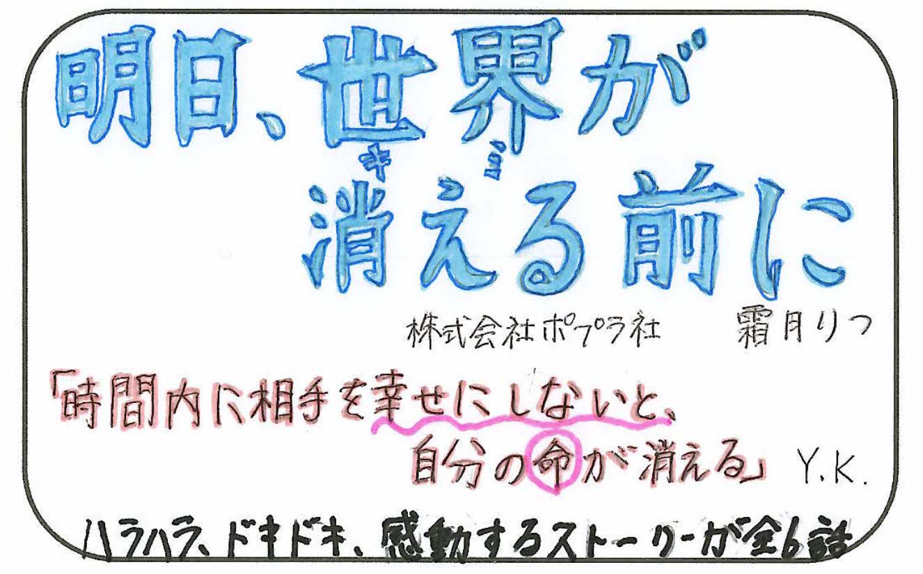 | 11.27 | 「明日、世界が消える前に」 | Y.K | 中学生 |