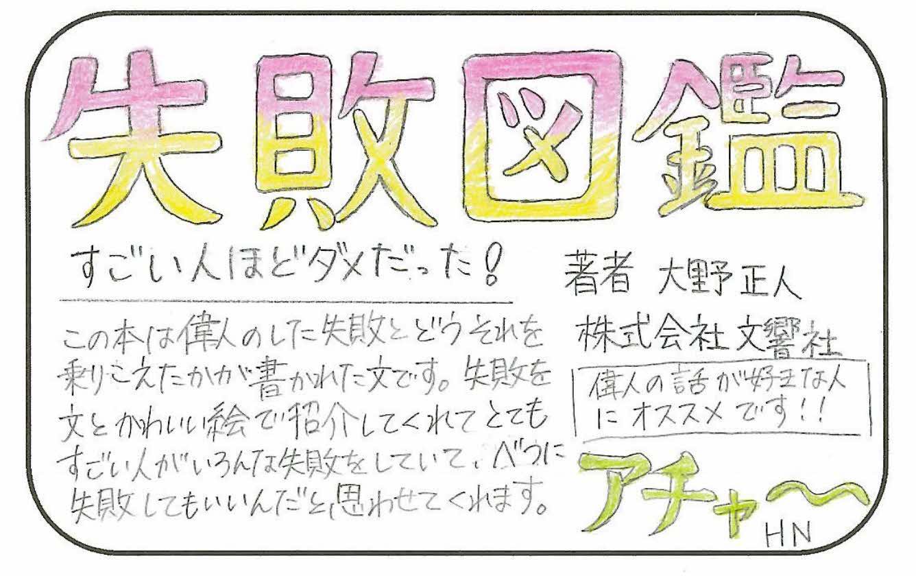 | 11.27 | 「失敗図鑑 すごい人ほどダメだった!」 | H.N | 中学生 |